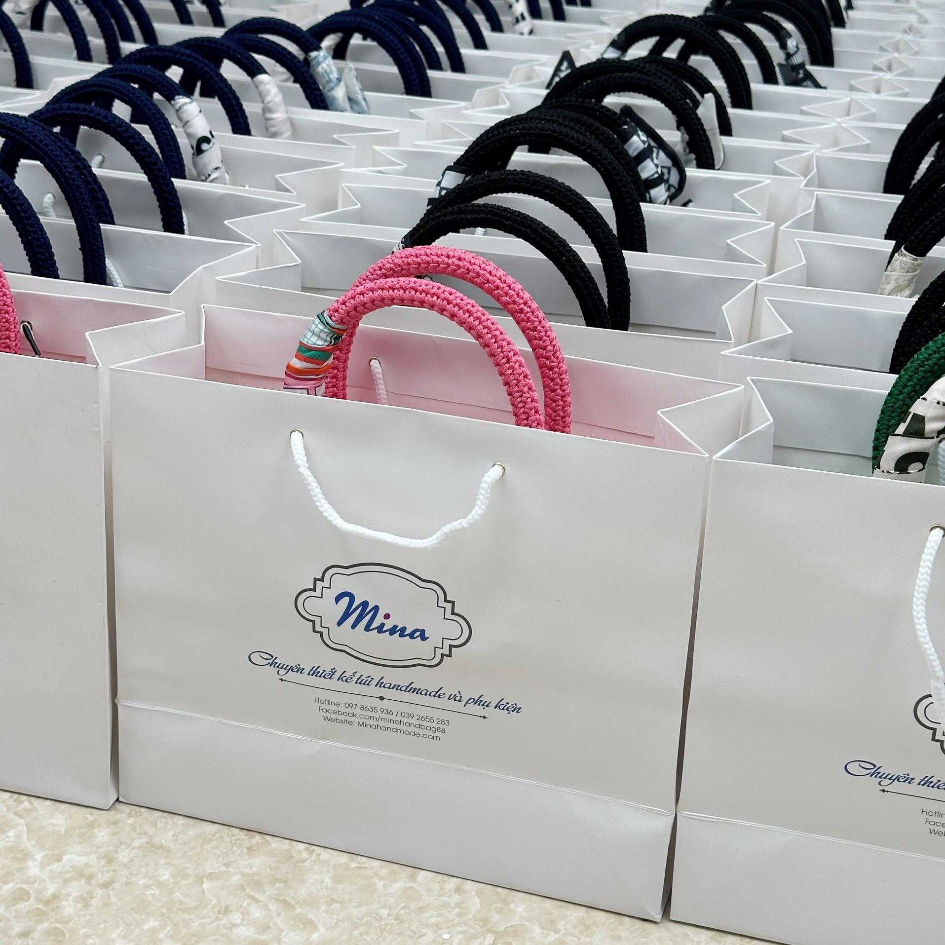 Sản phẩm hoàn thiện sẽ được tặng 01 túi giấy của Mina sang trọng màu trắng. Nếu mua để làm quà tặng, bạn hoàn toàn có thể mang đi tặng mà không cần gói quà thêm